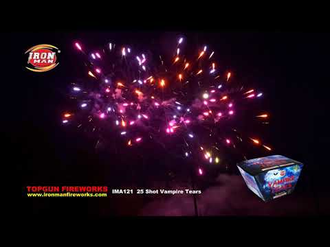 Very bright, 3 shots at a time, crackling mine to color dahlia with red plum, crackling mine to titanium gold coconut with red plum. Vivid shots of orange, purple, and copper fill the sky with mines and crackle.